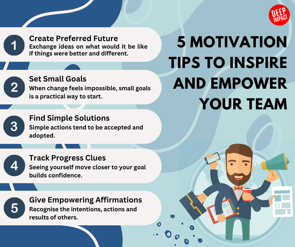 Here are FIVE motivational tips to inspire and empower your team, enabling them to overcome challenges and reach their full potential.