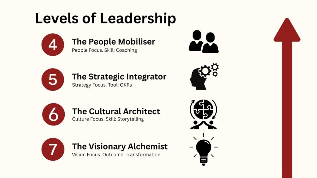 The 7 Levels framework provides a clear, pragmatic, and motivating path, transforming leadership from a bottleneck into your organisation’s most powerful asset. By understanding and applying these levels, you move leaders from simply reacting to daily demands towards strategically shaping the future.